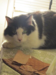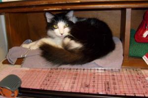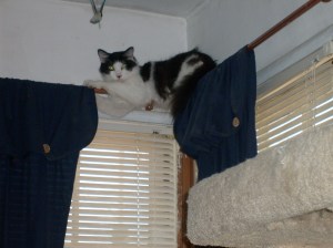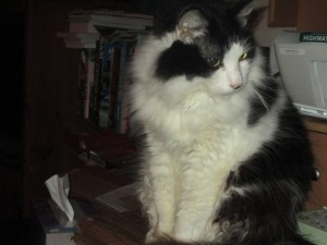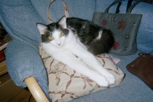 My beloved little black and white cat, Bandit passed away this evening. He had just turned 14 years old on April 13. He is survived by his siblings, Missy, Rusty and Racer. I am really missing him right now. He was very loving and sought out our attention after dinner each evening, wanting to be petted, stroked, and loved on. He would run from me to Doug, wanting his ears to be scratched or his little butt rubbed. Never hurt anyone, very laid back, and always ready for a treat. Or for a drink from my bowl when I finished my cereal, he loved milk. He was also a little nut who didn’t want to do what we wanted him to do, like stop scratching the furniture or get down.
