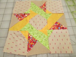 This is a very easy block that is so fun to make. You will need to make 4 of these fast little blocks. Each block will go at the corners of the outside border. Instead of writing the directions out here, I am providing a link. Make sure that you scroll to 3-inch Finished Blocks.