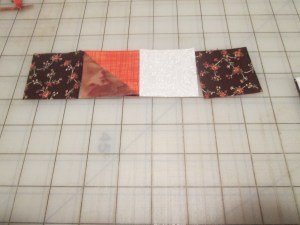 Sew together your brown and other contrasting triangles together to make 8 HST.