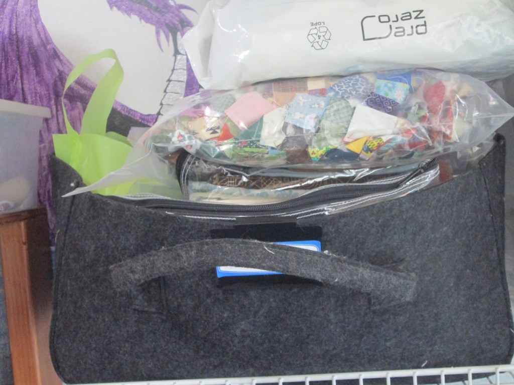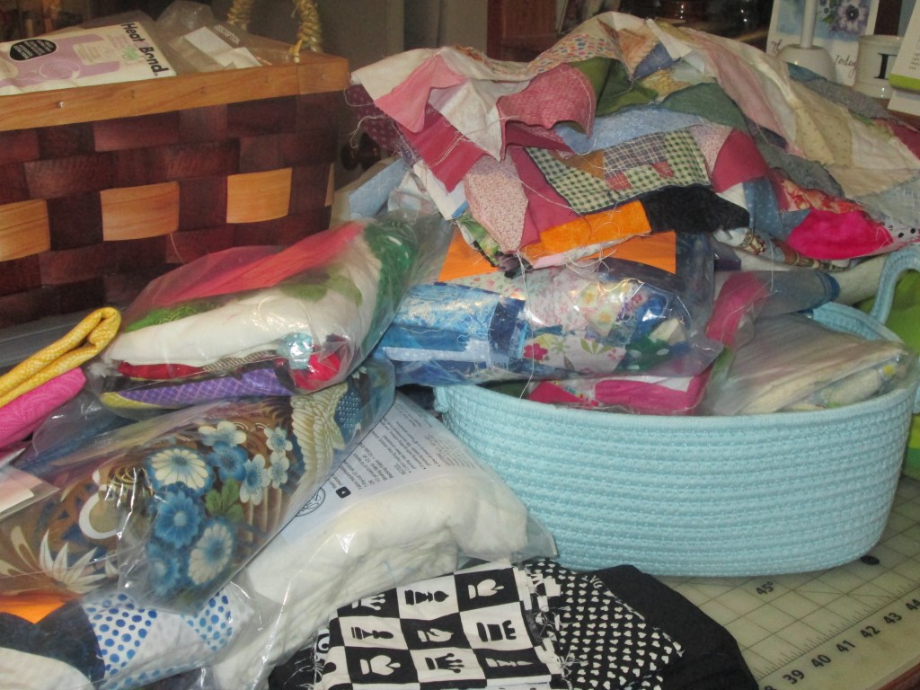 I have been cleaning my sewing room for the last few days, deciding what I want to keep, work on, or possibly rehome. I have gone through all of my large scraps and those are organized according to color and size. Don’t even ask about my jelly roll collection, that is one mess I am not ready to deal with yet.